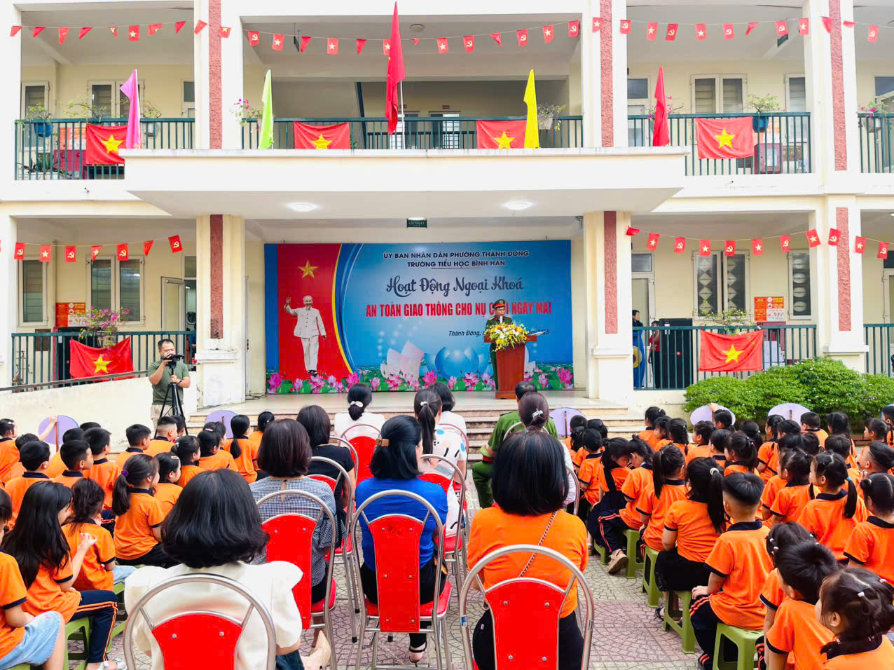Hôm nay (22/9), Trường Tiểu học Bình Hàn phối hợp cùng Công an phường Thành Đông đã tổ chức buổi giao lưu với chủ đề “An toàn giao thông cho nụ cười ngày mai” dành cho toàn thể học sinh trong trường.