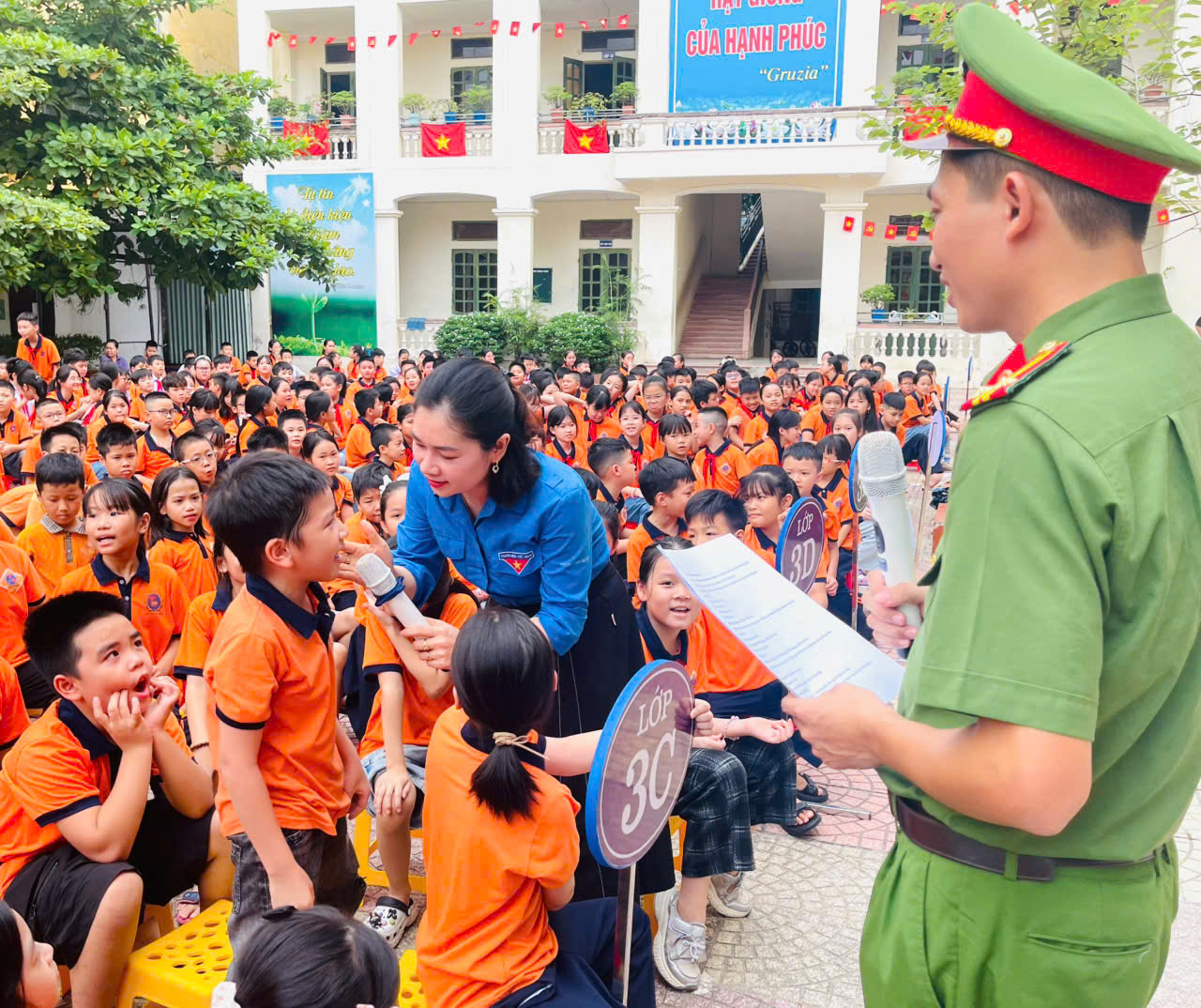 Trong buổi giao lưu, các em được các chú công an truyền đạt nhiều kiến thức bổ ích về: